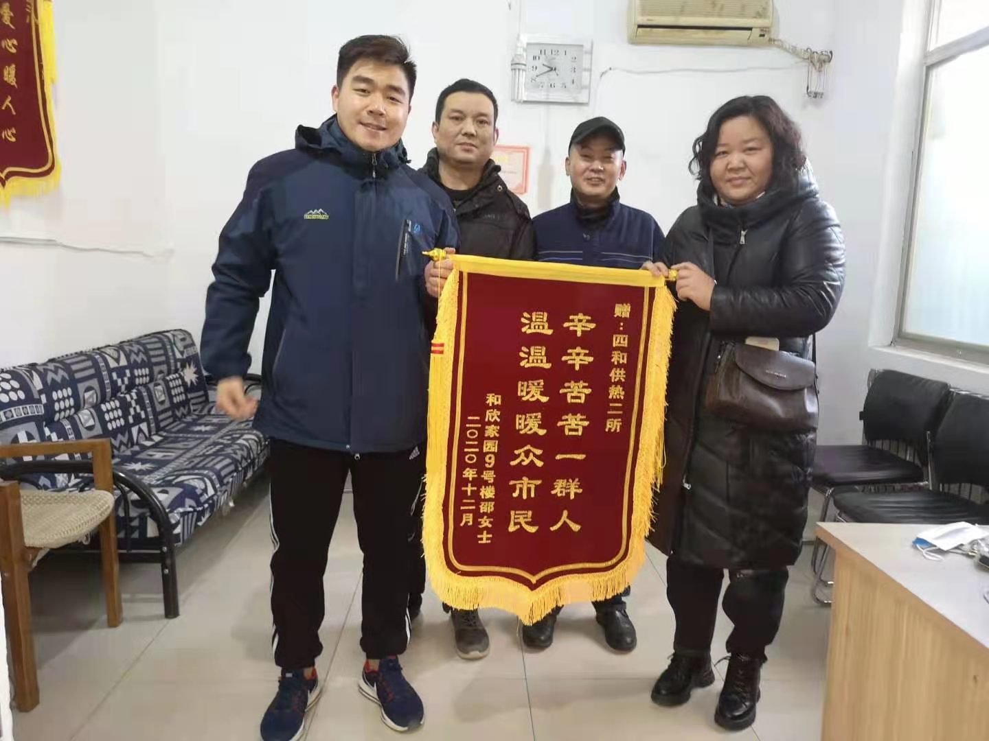 采暖季以來,水韻城、和欣家園、如意印染廠小區(qū)、胡營運河宜居佳苑小區(qū)等多個小區(qū)的業(yè)主代表陸續(xù)將錦旗送到濟寧四和供熱有限公司,對該公司為小區(qū)供暖做出的貢獻表示感謝。