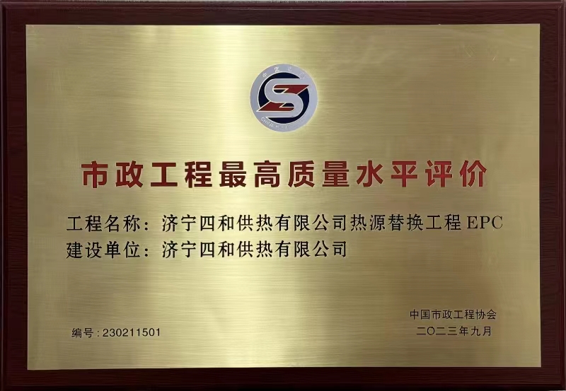 日前,中國市政工程協(xié)會發(fā)布《關(guān)于公布2023年度通過市政工程最高質(zhì)量水平評價(jià)工程的通知》,其中濟(jì)寧四和供熱有限公司熱源替換工程EPC名列其中。該獎項(xiàng)由中國市政工程協(xié)會組織評審,是市政工程行業(yè)在工程質(zhì)量方面最高質(zhì)量水平評價(jià),代表市政工程行業(yè)同時期國內(nèi)先進(jìn)水平。